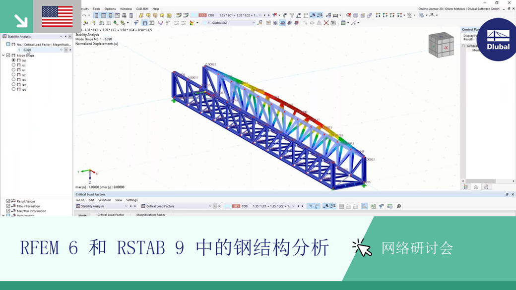 使用“结构稳定性”模块确定屈曲长度,并使用“钢结构设计”模块按照欧洲规范 3 进行钢杆件设计