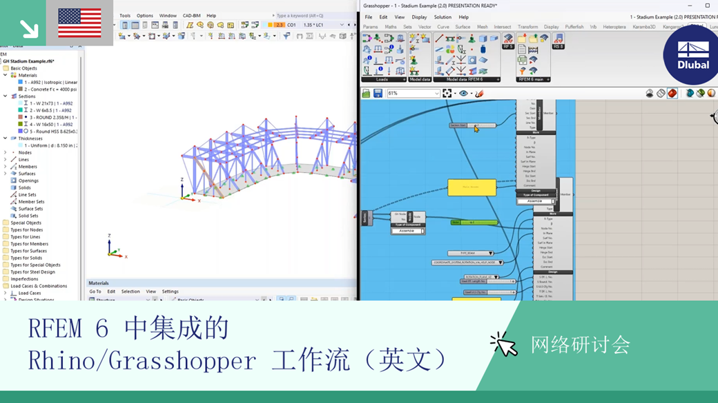 该网络课堂将介绍 RFEM 6 中集成了 Rhino/Grasshopper 的工作流程。
