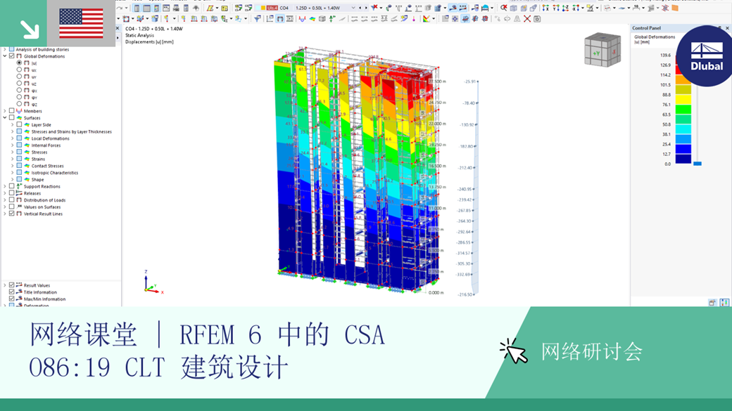 该网络课堂将介绍 CLT 多层建筑的设计流程。参照 RFEM 6 规范 CSA O86:19。