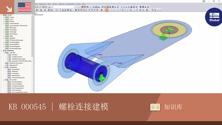 Wenn man diese Stäbe als Druckstäbe definiert oder besser mit der Stabnichtlinearität "Ausfall bei Zug" versieht, lässt sich zusätzlich die Lochleibung simulieren.