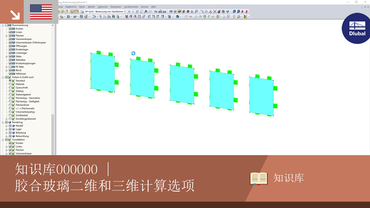 Bei der Glasbemessung im Zusatzmodul RF-GLAS stehen grundsätzlich zwei verschiedene Berechnungsoptionen zur Verfügung: eine 2D- und eine 3D-Berechnung. Grundsätzlicher Unterschied dieser beiden Bemessungsvarianten ist die vom Programm automatisierte Modellierung der Scheiben im temporären Modell. Bei einer 2D-Bemessung werden für die einzelnen Scheiben gängige Flächenelemente (Plattentheorie) generiert, während bei der 3D-Bemessung die einzelnen Scheiben als Volumen abgebildet werden. Je nach gewähltem Schichtaufbau steht die Option zur Wahl oder wird vom Programm bereits automatisch vorgegeben.