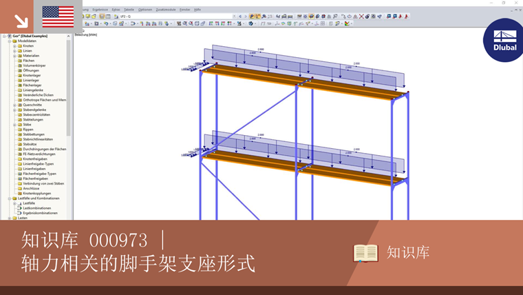 通过点击非线性选项卡可以看到“脚手架”的设置部分,RFEM 提供了根据标准制定的解决方案,那就是可调节的节点支撑旋转自由度 φX ' 和 φY' 。